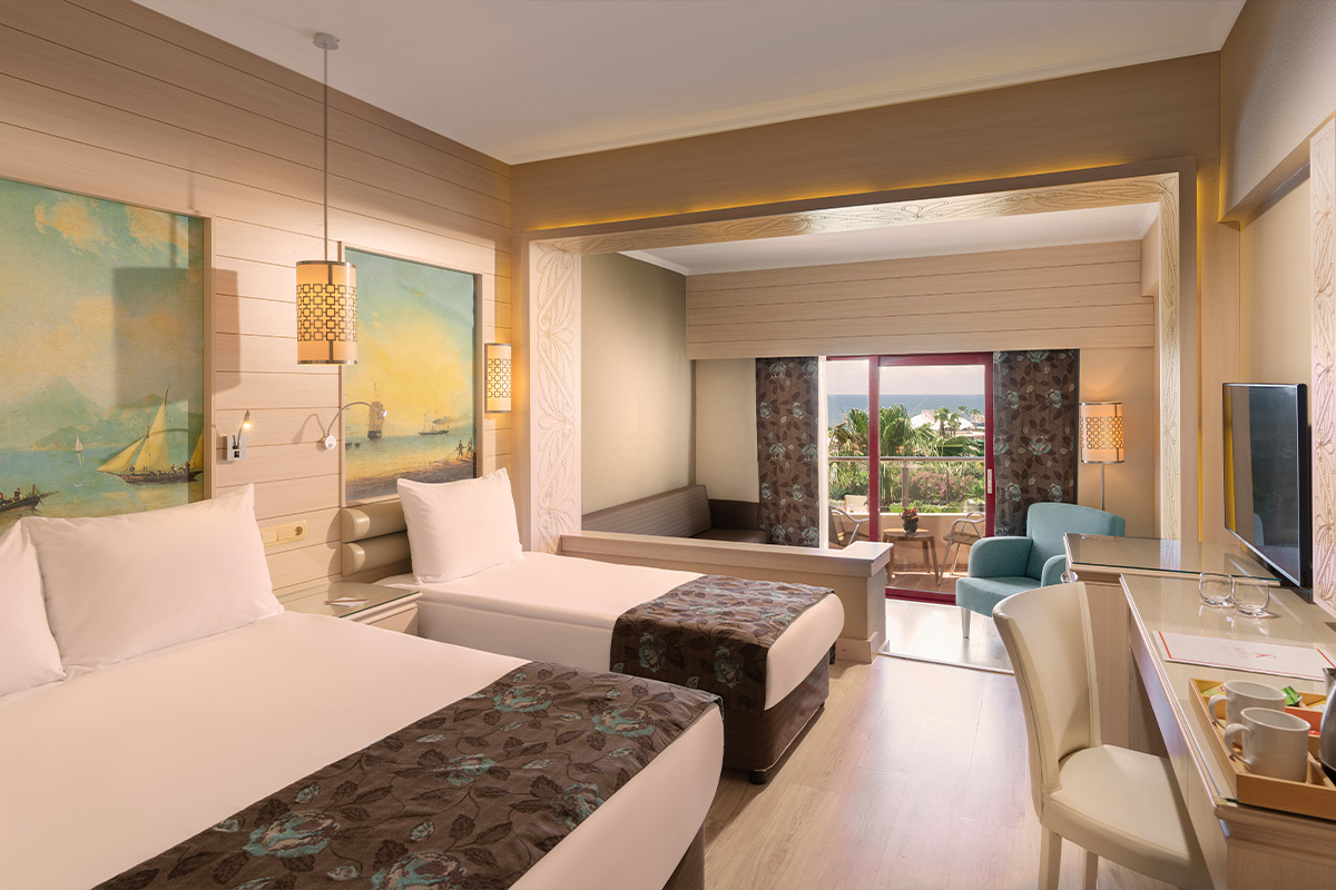 Die modern eingerichteten Zimmer im Kaya Belek bieten einen Flachbild-TV, Klimaanlage, ein eigenes Bad und einen Balkon mit Gartenblick. WLAN ist in den Zimmern kostenlos verfügbar.